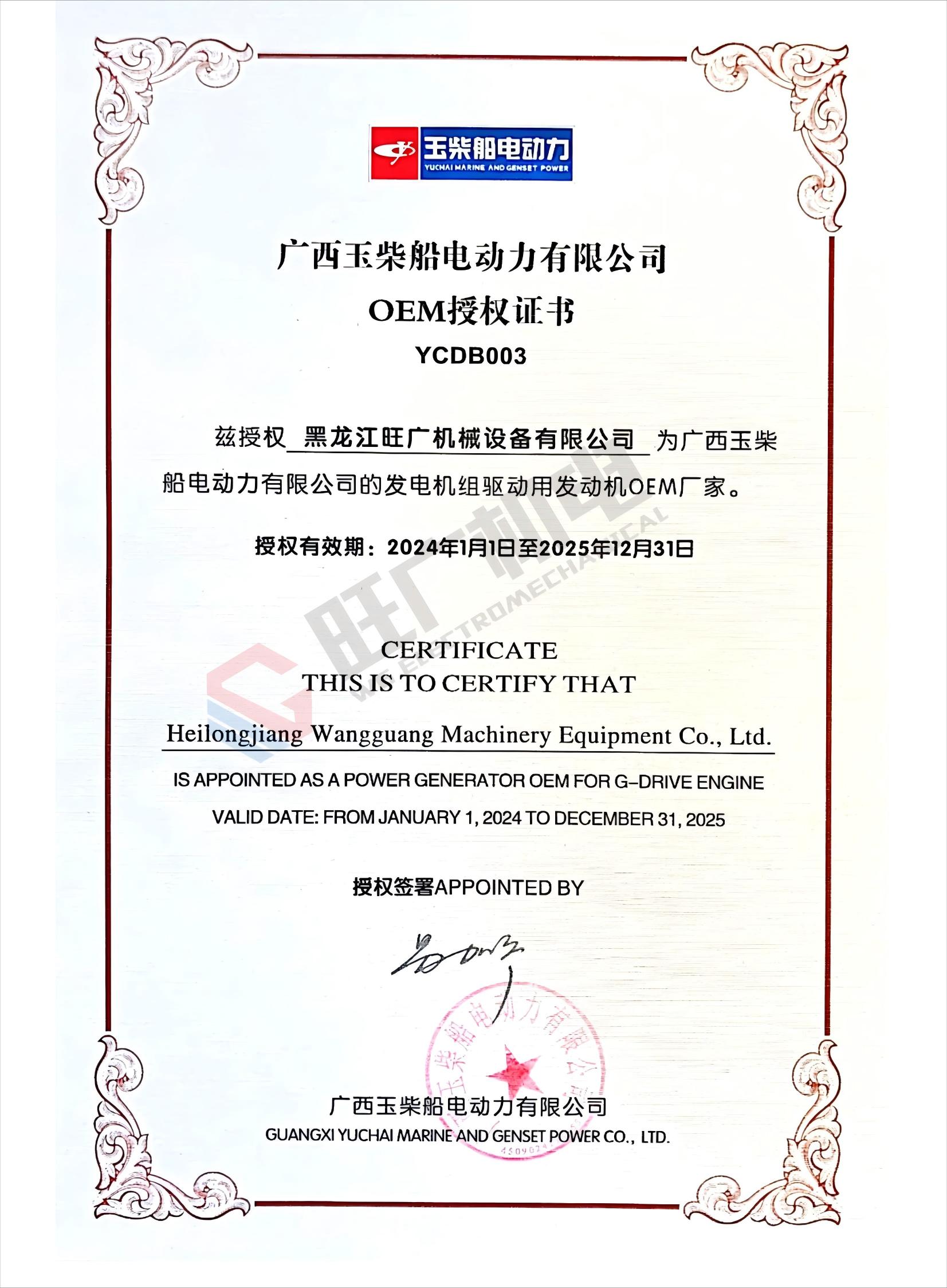 廣西玉柴OEM授權(quán)書
