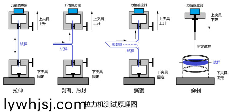 基(ji)礎(chu)實(shi)驗(yan)(拉(la)伸(shen)、穿刺(ci)、剝(bo)離(li)、剪(jian)切、彎麯、撕(si)裂(lie)、熱封、活(huo)動(dong)性等實(shi)驗(yan))(可(ke)配(pei)引(yin)伸計)。