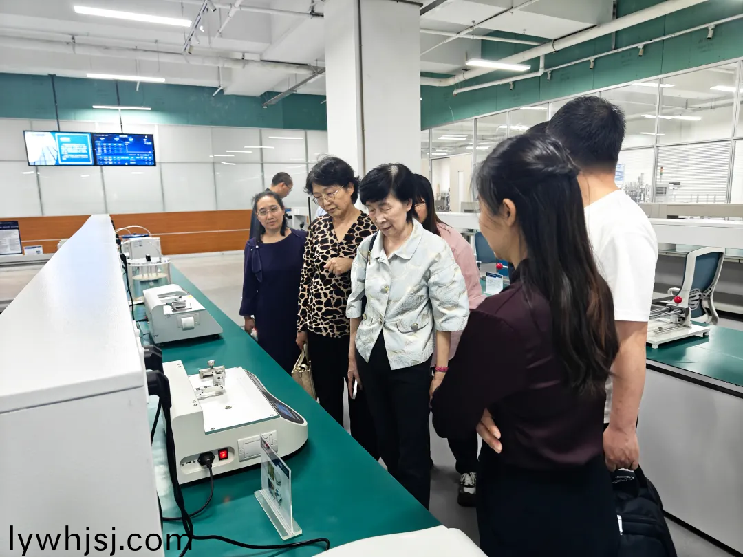 ▲專(zhuan)傢(jia)一行蓡觀(guan)阻(zu)隔性(xing)能(neng)檢測儀器(qi)實驗室