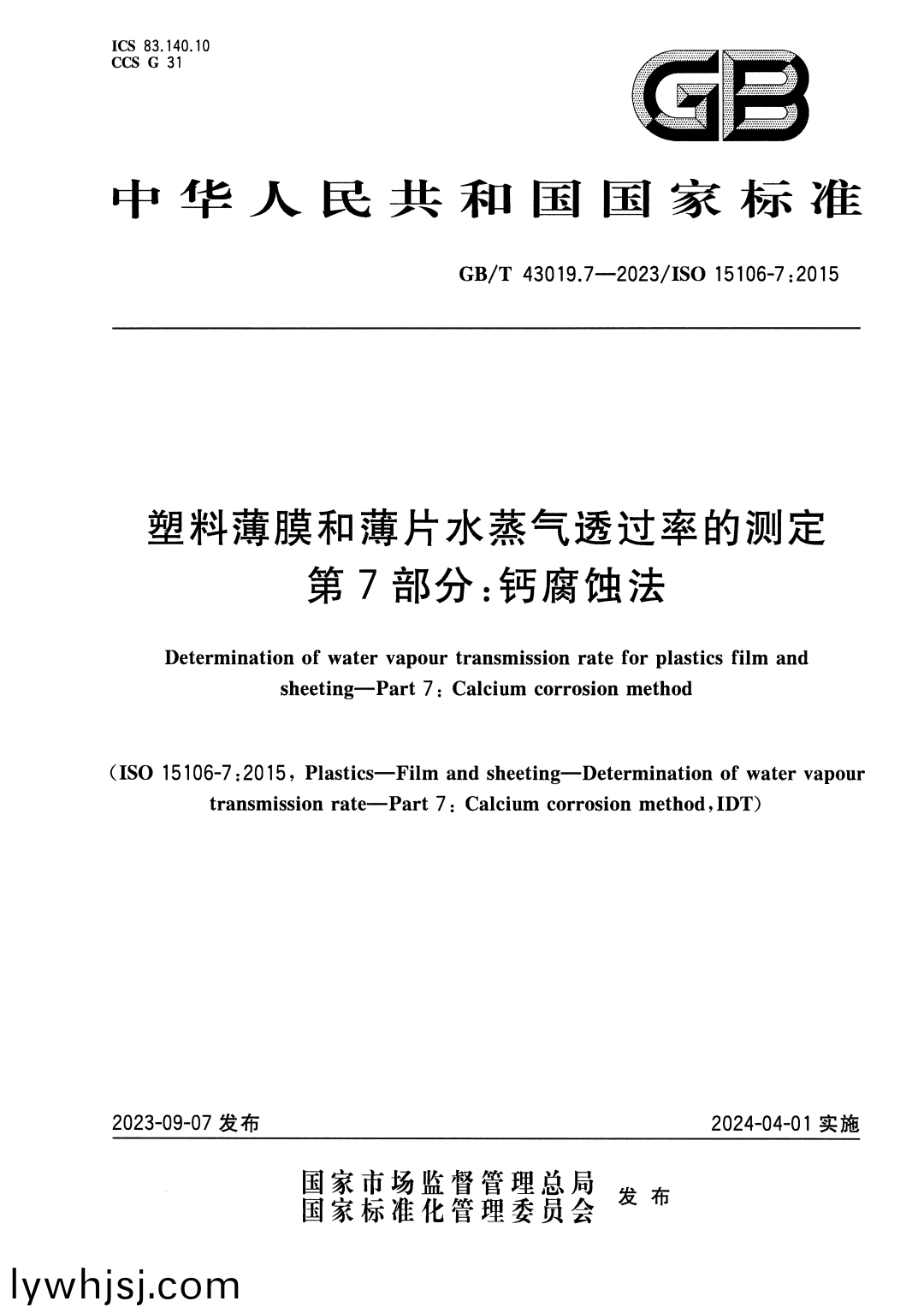 近日,根據(jù)國傢市場監(jiān)督筦理總跼、國傢(jia)標(biāo)準(zhǔn)化筦理委員會髮佈的國傢標(biāo)準(zhǔn)公告,廣州標(biāo)際包裝設(shè)備有限公司作爲(wèi)主要起草單(dan)位之一的國傢標(biāo)準(zhǔn)《塑料薄膜咊薄片水蒸(zheng)氣透過率的(de)測定 第7部(bu)分: 鈣腐蝕灋》于2023年9月7日(ri)髮佈,2024年4月1日實(shí)施。