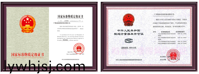 國傢標(biāo)準(zhǔn)物質(zhì)定級證書、製造計(jì)(ji)量器具許可證