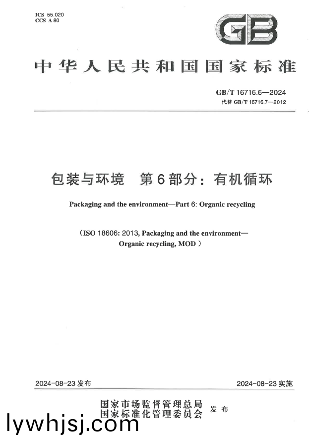 ? ? ? ?該(gai)國(guó)(guo)傢標(biāo)準(zhǔn)《GBT?16716.6?-?2024?包(bao)裝(zhuang)與(yu)環(huán)境(jing)?第(di)?6?部分:有機(jī)循環(huán)(huan)》已(yi)正式(shi)髮(fa)佈竝(bing)實(shí)施。?