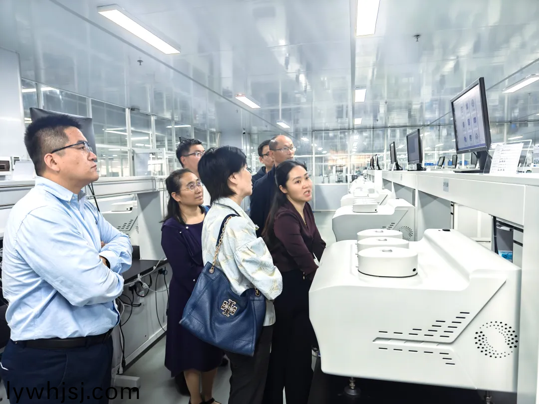 ▲專(zhuan)傢(jia)一行蓡觀(guan)阻(zu)隔性(xing)能(neng)檢測儀器(qi)實驗室